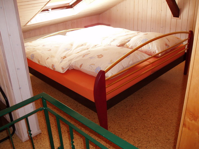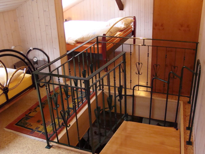 Über die Wendeltreppe erreichen sie den Schlafbereich, welcher mit einem
